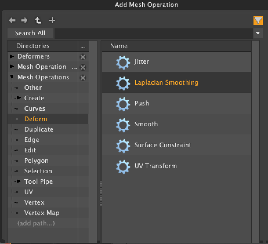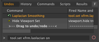 - Restart Modo. The procedural operator will appear in the appropriate menu (e.g., Mesh Operations → Deform) . The direct tool is named xfrm.laplacian. Type tool.set xfrm.laplacian on on command field of command history viewport. After setup the laplacian smoothing tool, you can see Strength attribute on the tool property viewport. This supports falloff weights.