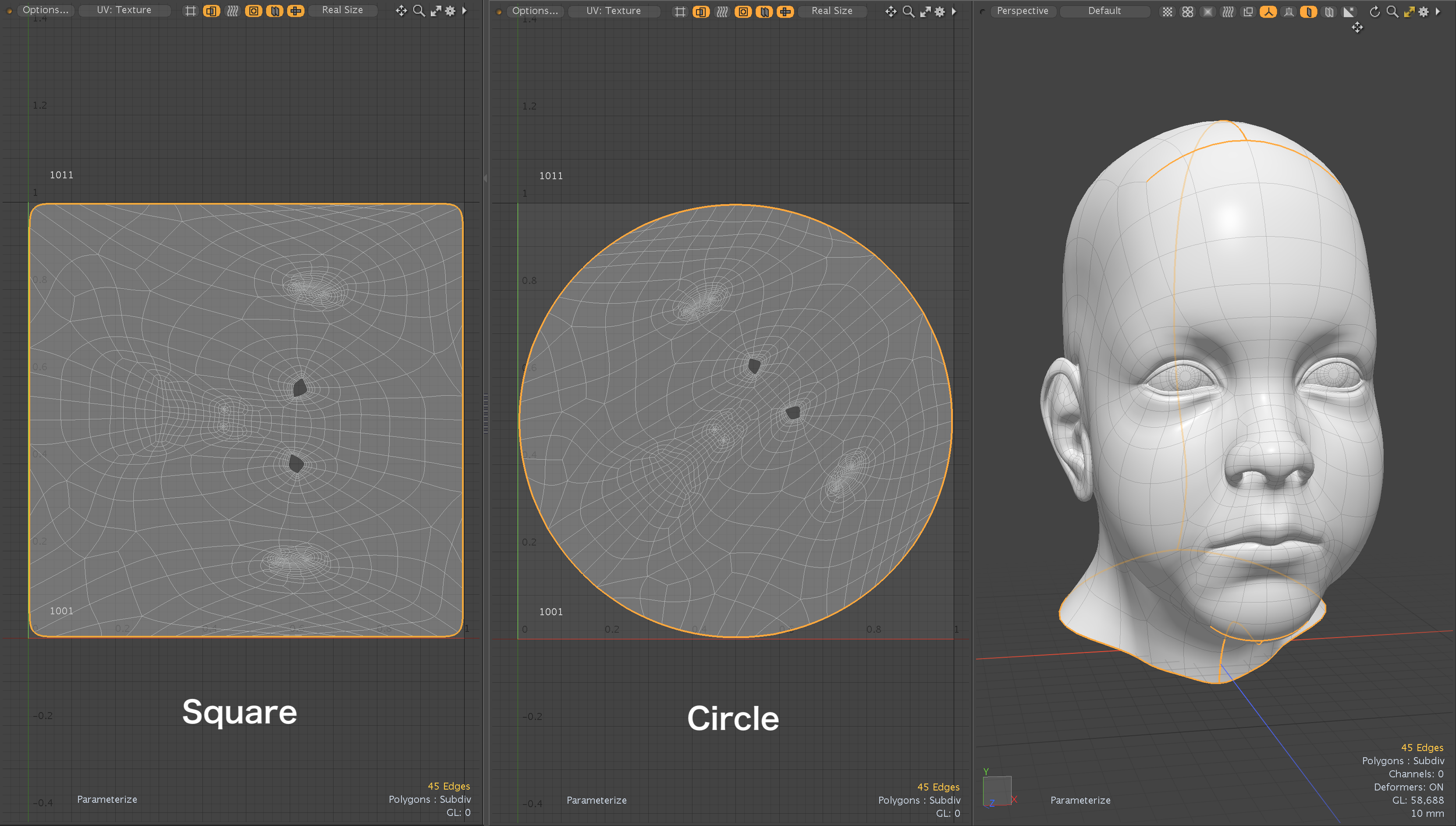 - Automatically triangulates N-gon meshes (using Ear Clipping or optional CDT) to improve parameterization quality.