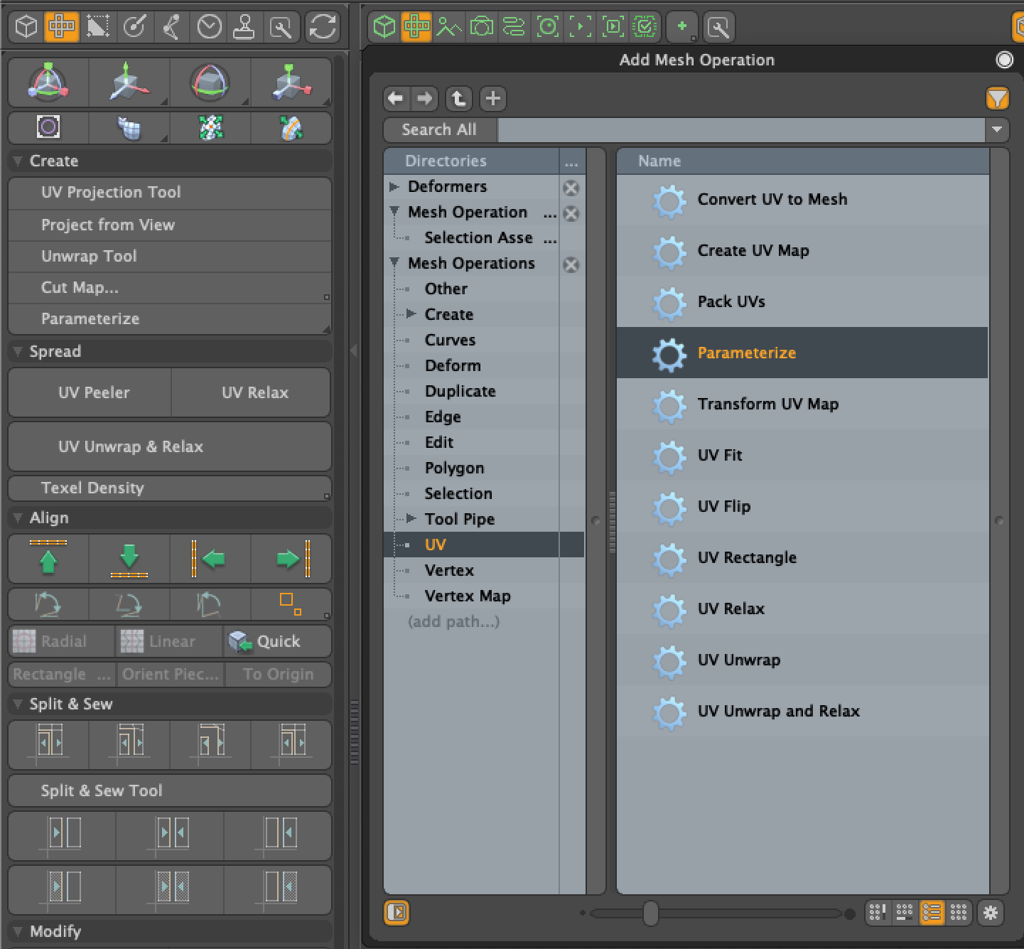 - Restart Modo, then access the plugin via the UV tab or Mesh Operator panel