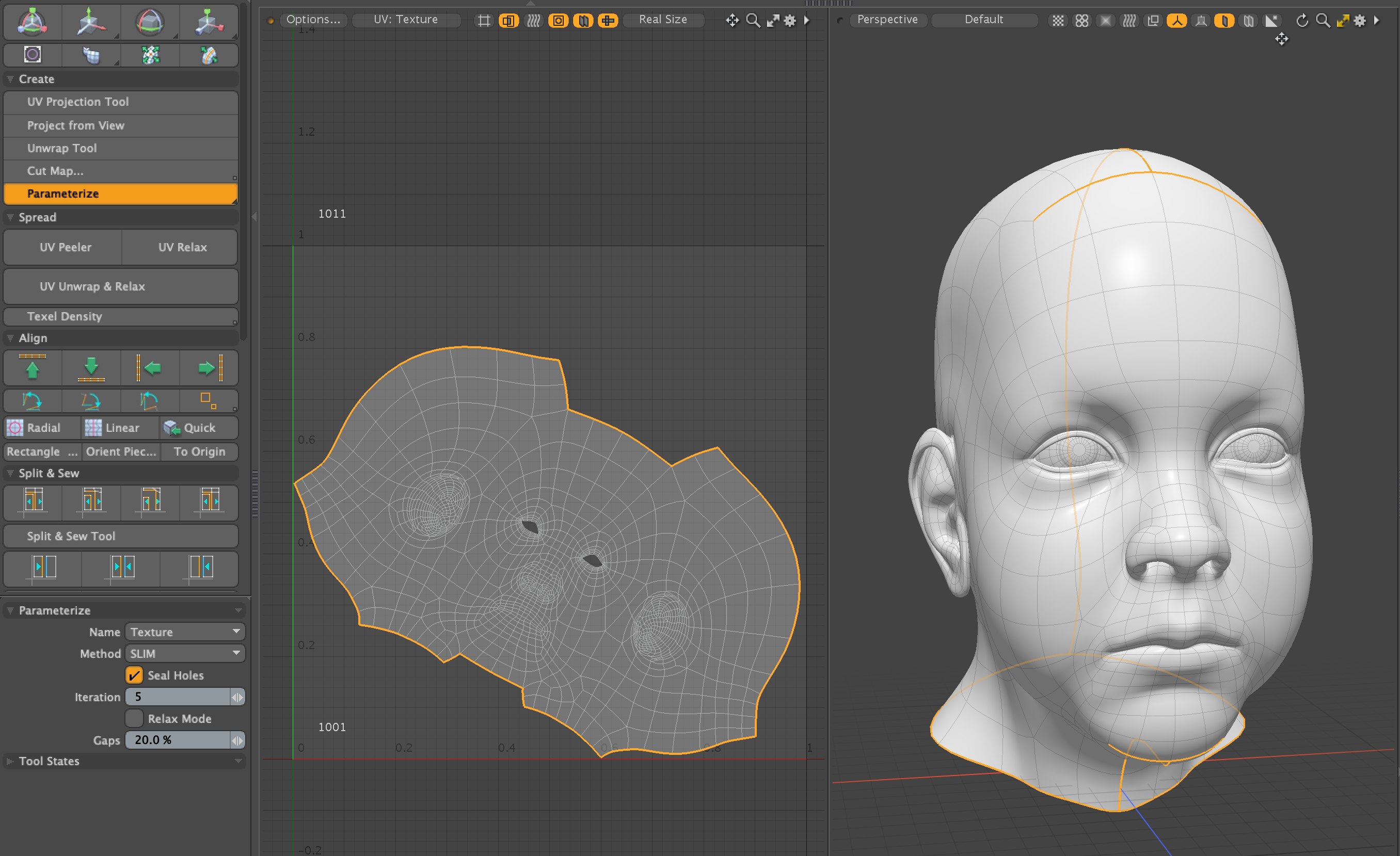 - Multiple parameterization methods: Discrete Conformal Map, Authalic (area-preserving), Mean Value Coordinates, LSCM, ARAP, SLIM (Scalable Locally Injective Maps)