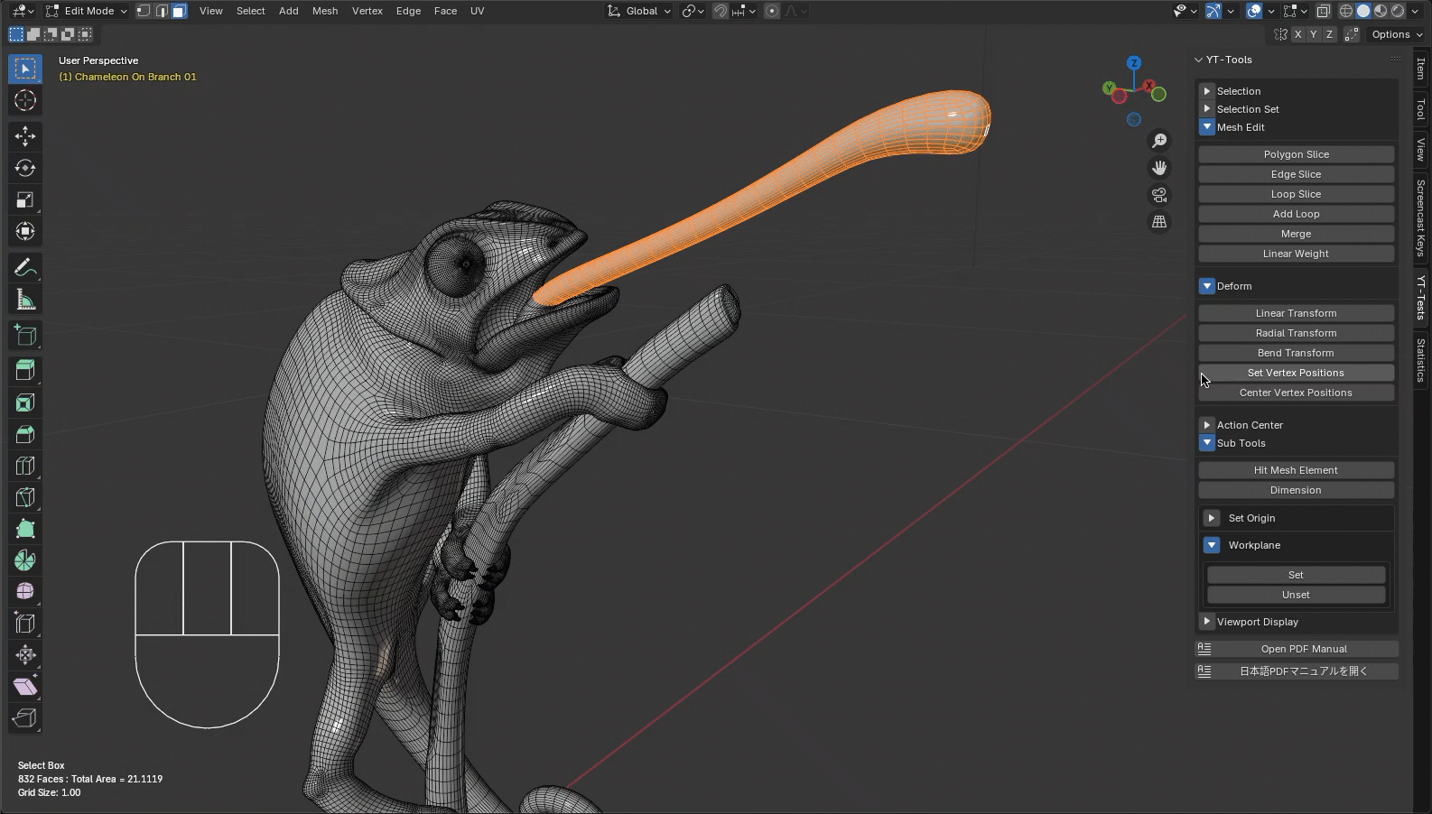 YT-Toolsは、BlenderにModoライクな操作性をもたらすアドオンです。選択、分割、トランスフォーム、表示など、モデリング作業を効率化する多彩な機能を搭載しています。