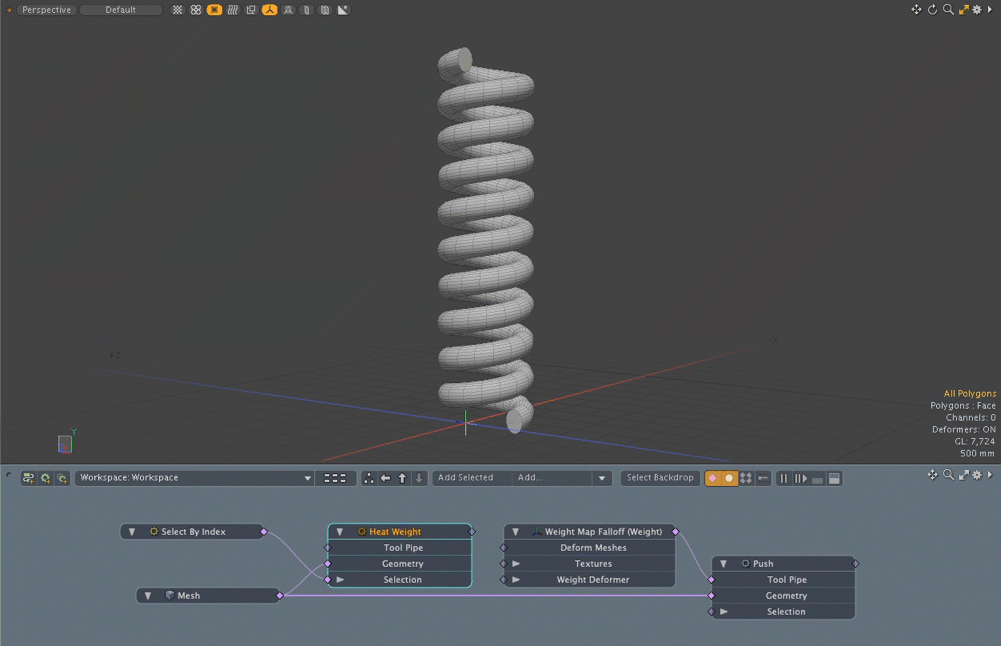 - Control influence by falloff shape or Modo falloff sub-tool.