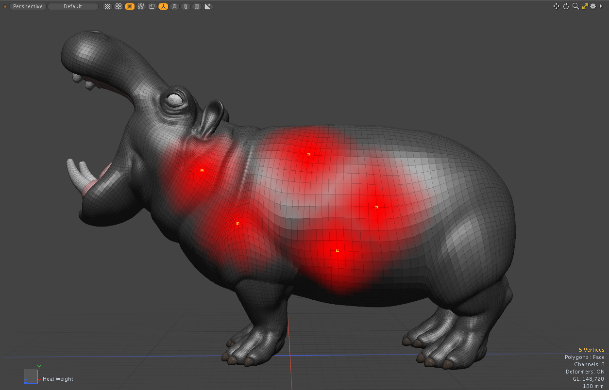 - Automatically assigns skin weights via the heat method algorithm across mesh vertices per connecting polygons